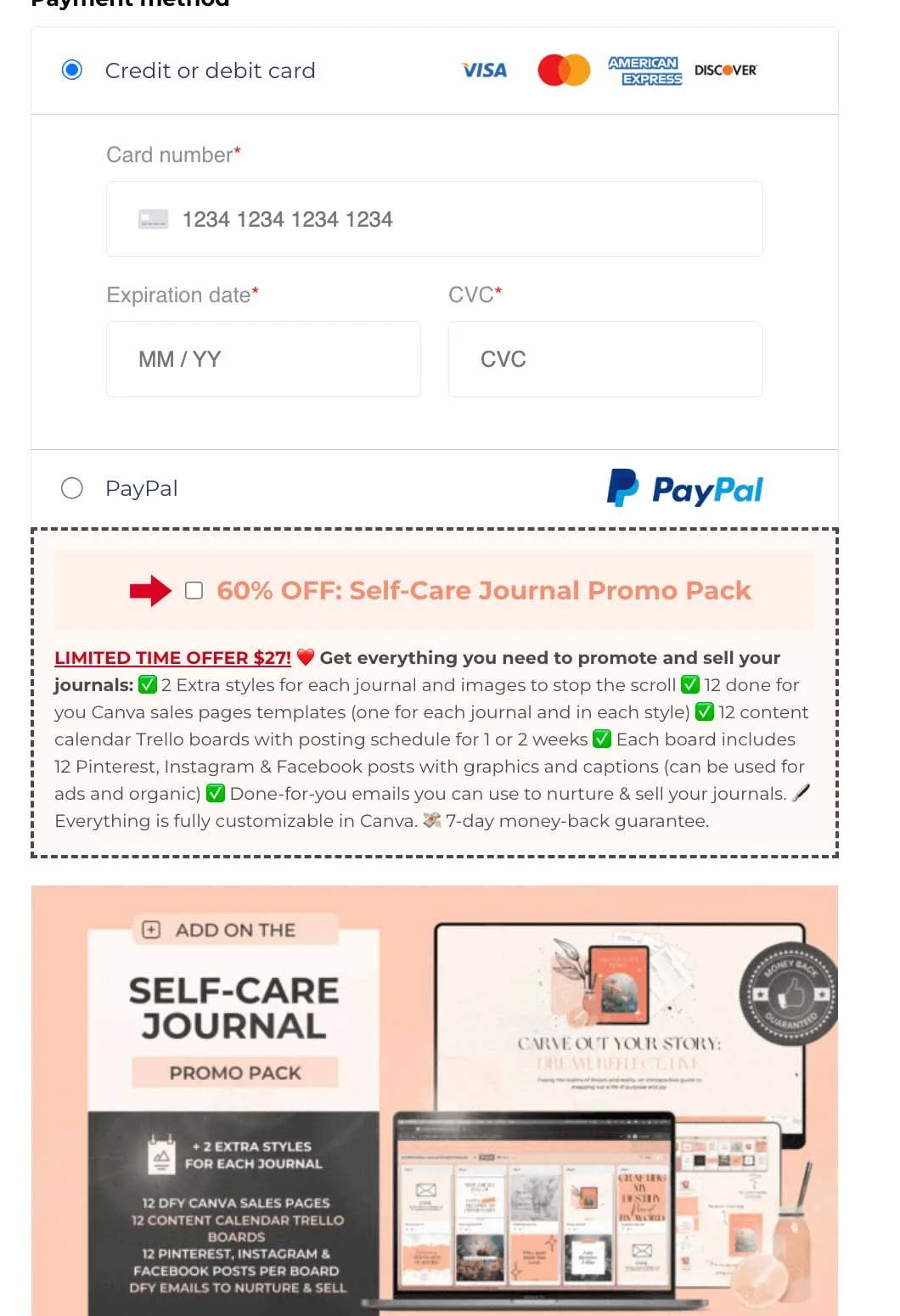 As you can see in the example below, this is my cart page (order form) for one of my digital products.